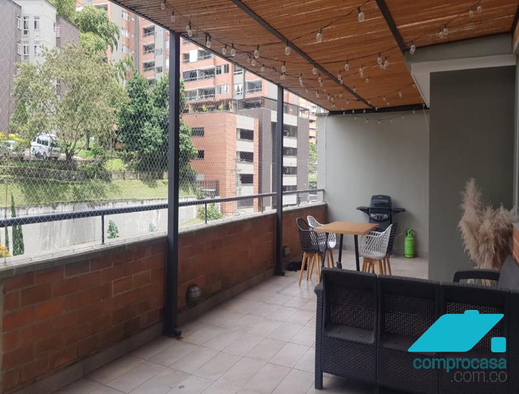 venta de hermoso apartamento en tres esquinas, sabaneta 86 metros cuadrados, 3 habitaciones, 2 baños, sala, comedor, cocina abierta con barra, zona de ropas, 2 balcones, parqueadero, cuarto útil administración 370 mil pesos valor del inmueble 390 millones de pesos unidad con porteria 24/7, sauna, turco, salón social, zona bbq, terraza. sector plano, cerca a colegios, supermercados, gimnasios. ...